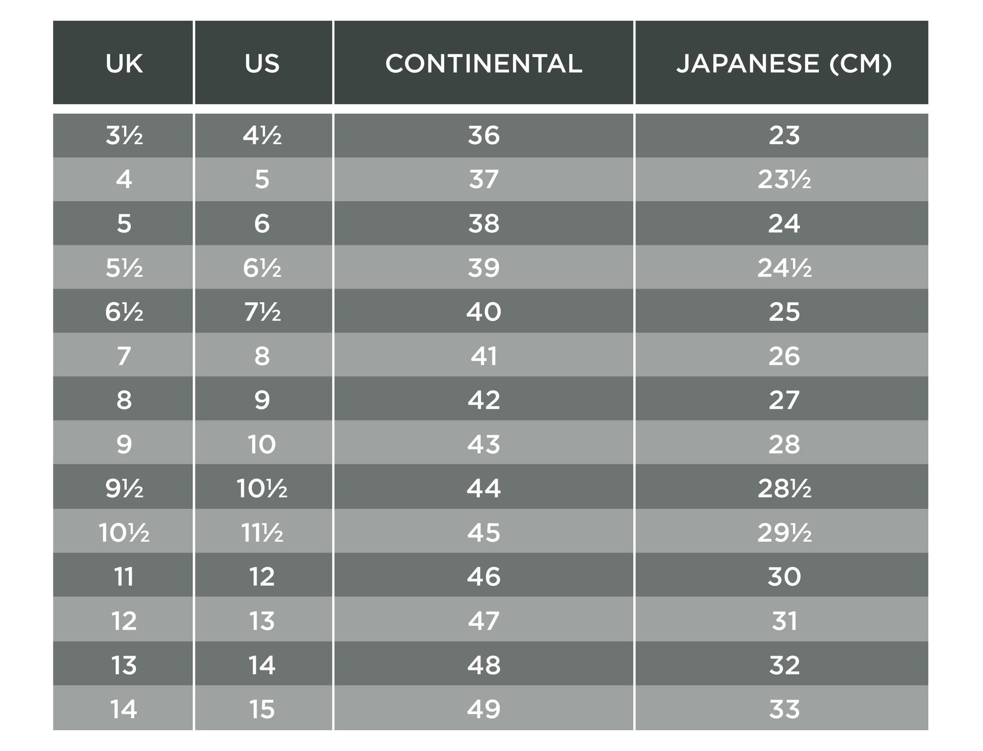 • EU 35 – 49 (UK 2½ – 14)