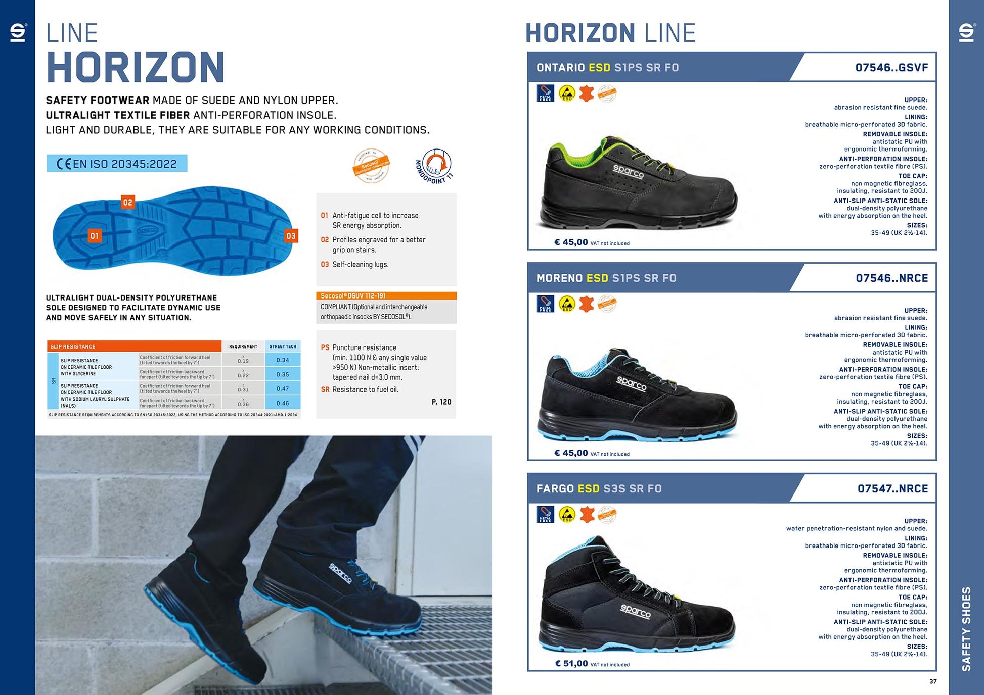 Sparco Horizon Line Safety Shoes – ESD S1PS / S3S SR FO (EN ISO 20345:2022)