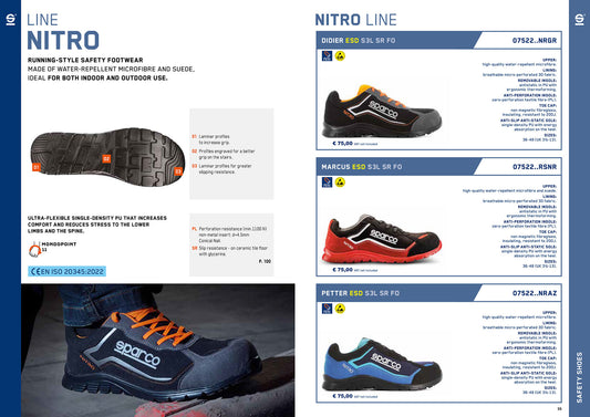 07522 Sparco Nitro S3L ESD Safety Shoes Lightweight, Water-Repellent, Anti-Static, Slip-Resistant Work Footwear with PU Sole & Fiberglass Toe Cap