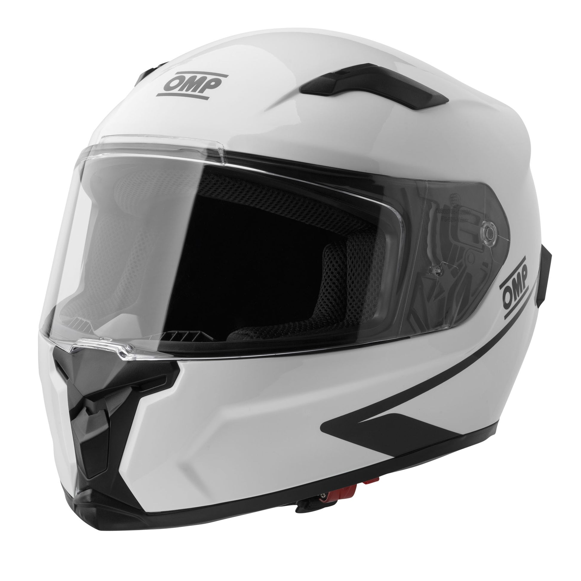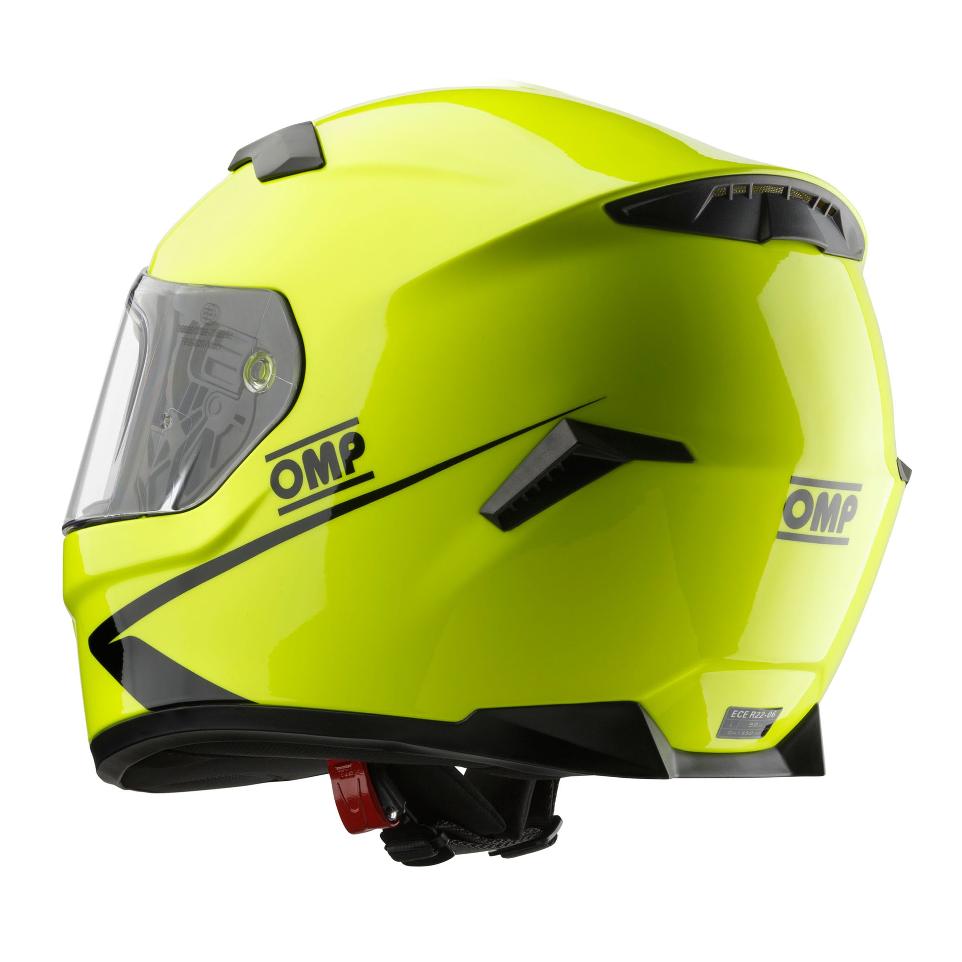 The OMP CIRCUIT EVO 2 Crash Helmet is designed for karting and track days. Made with a durable thermoplastic material, it features a comfortable and breathable lining, removable cheek pads, and adjustable air vents for aerodynamic performance. The micrometric quick release padded strap and anti-scratch visor provide ease and protection. Available in classic or fluorescent yellow colours. ECE 22.06 homologated.