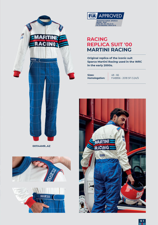 001144MR Sparco Martini Racing Classic Retro Rally Suit Fireproof FIA 8856-2018