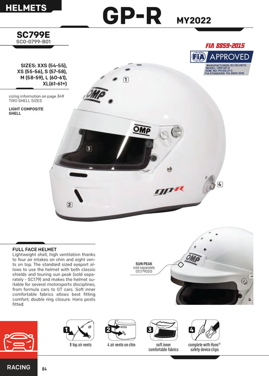 If you need a helmet for karting or track days we have amazing value helmets from OMP and Sparco that are ECE approved for none race use.