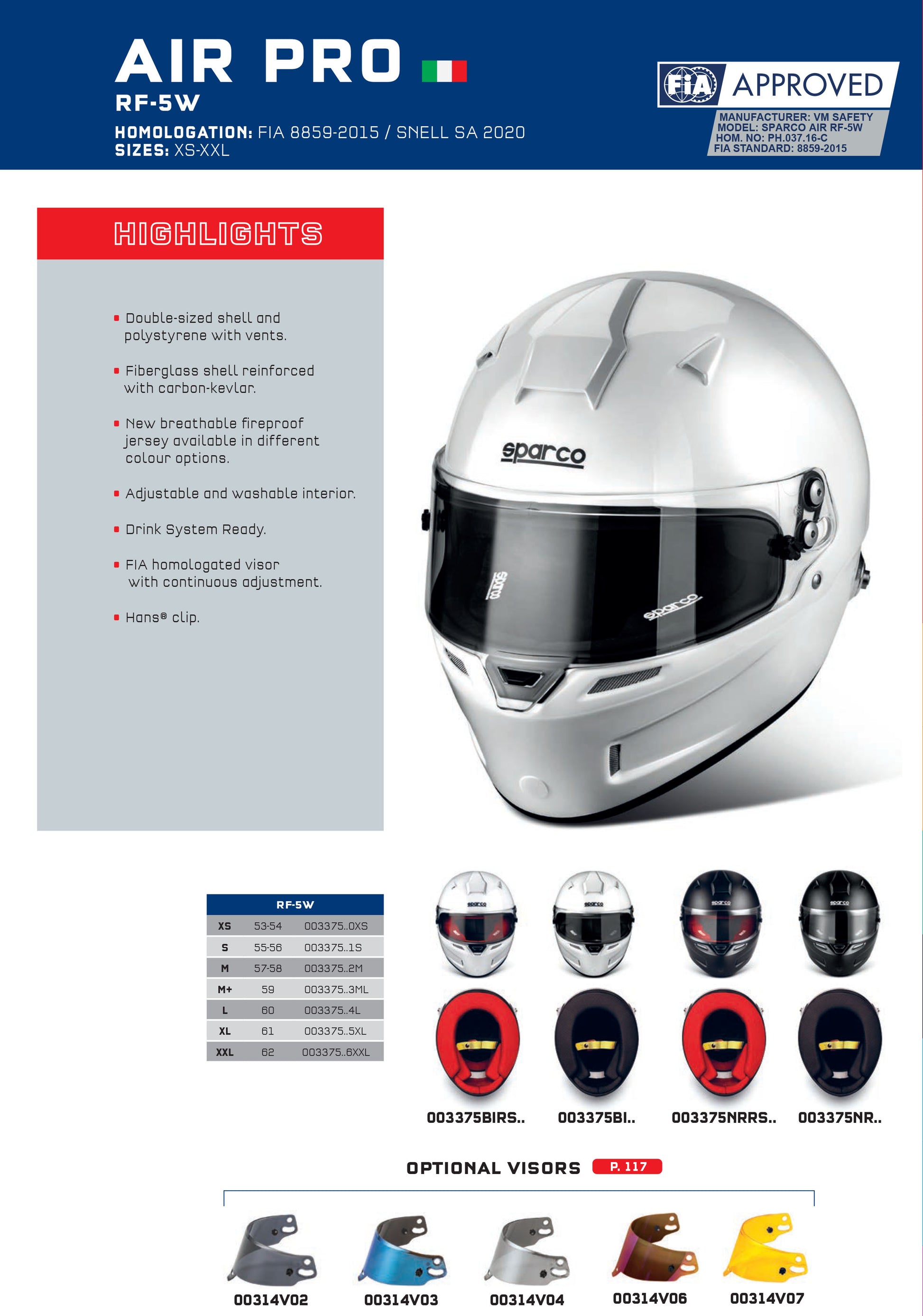 003375 Sparco AIR PRO RF-5W Full Face Helmet Race Rally Kart FIA SNELL Approved